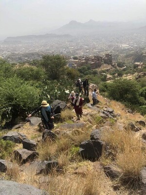 أكملنا فطورنا، وبعدها توجهنا إلى مكان التجمع في نهاية حدة، كان هناك عدد من الأشخاص ينتظرون، بينهم امرأة ترتدي قبعتها، تعرفنا عليها في ما بعد، اسمها عبير الكوكباني، جلست أنا وفخرية نمارس هواية "الحش"، بعدها تقدم إلينا شخص سأل صديقتي هل أنتِ فاطمة الأغبري؟ قالت لا، هذه، قال نحن أخبرنا عنكما الأستاذ عبدالكريم الرازحي، وطلب الاهتمام بكما كون هذه مشاركتكن الأولى. لا أخفيكم أني سعدتُ بذلك الترحيب اللطيف، وبذلك القبول من بقية أعضاء الجروب الذي تنوعت أعمارهم بين كبير وصغير، ولكن جمعتهم هواية واحدة، وهي رياضة المشي والتسلق.